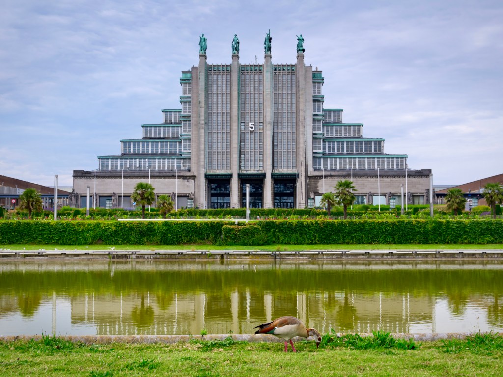 An Egyptian duck in front of Centenary Palace (Palais du Centenaire)