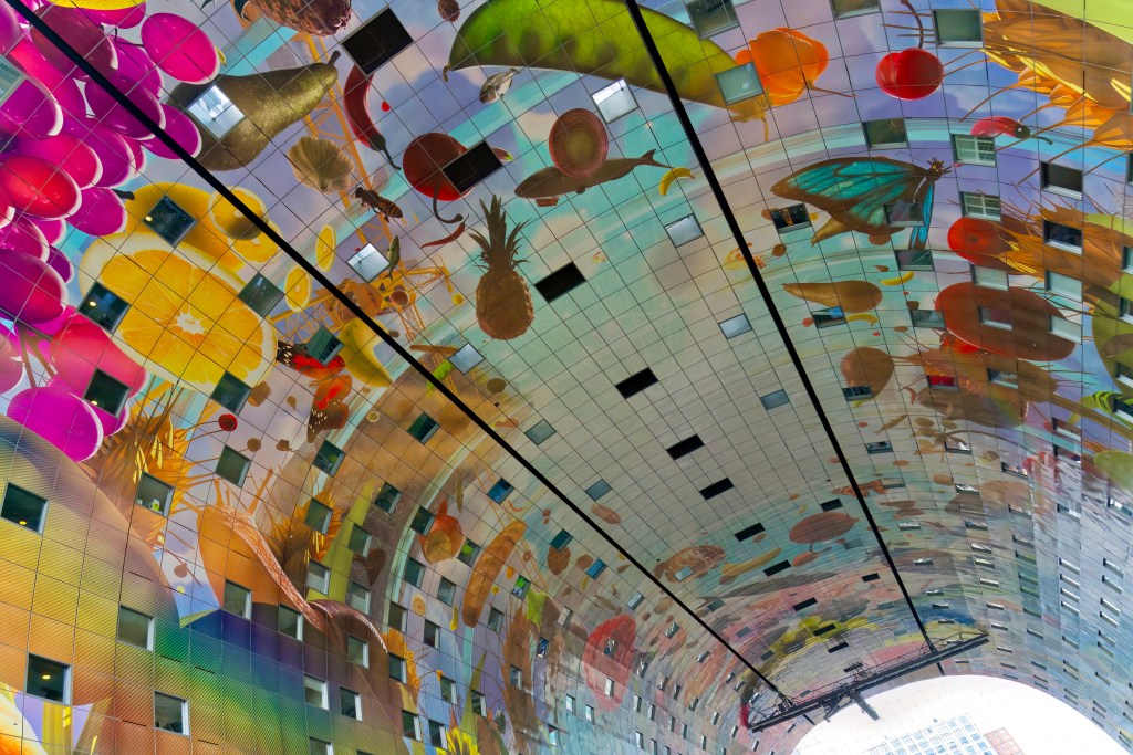 Lot’s of amazing angles and diagonals here. And what fun that ceiling in Markthal is! Awesome work kewtiebird.