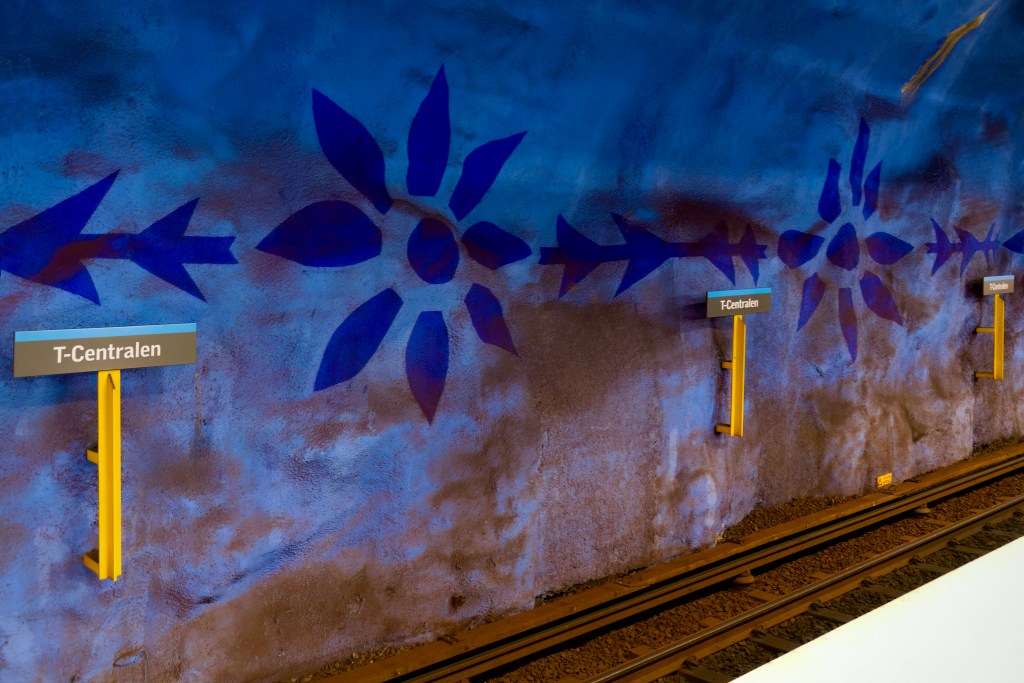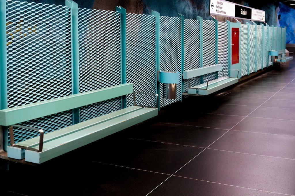 We stayed for a week in Stockholm last summer. Here are images of details I noticed while traveling around in the metro system (Tunnelbana). Oh, and I threw in a shot of a colourfully decorated bus stop as well.
