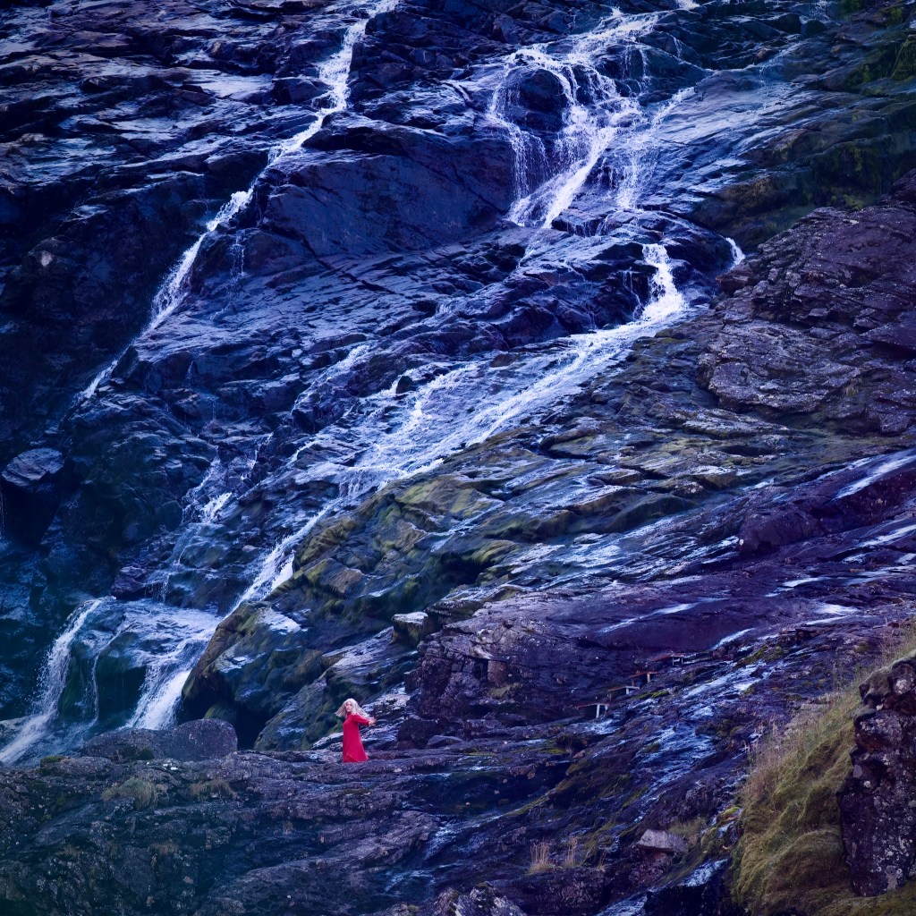 Huldra dancing at the (very anemic) Kjosfossen in Flåmsdalen (this is the least amount of water I’ve ever seen there)
