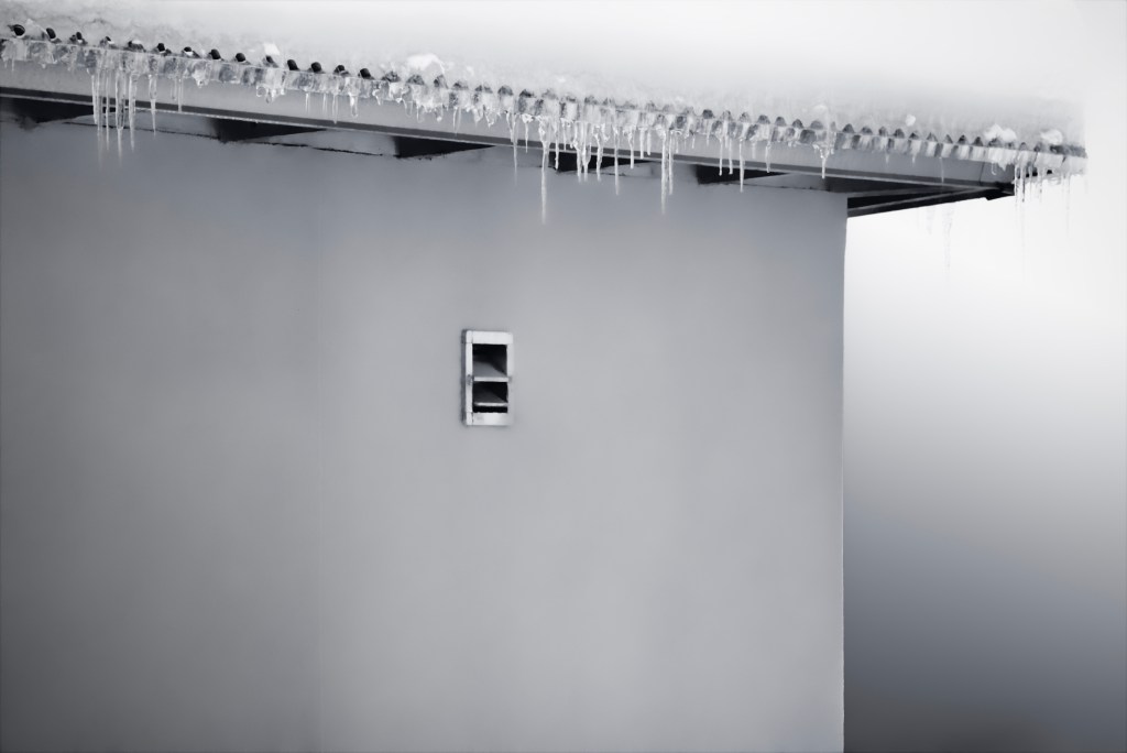 Icicles and an air vent decorate a restroom at Hvervenbukta in Oslo