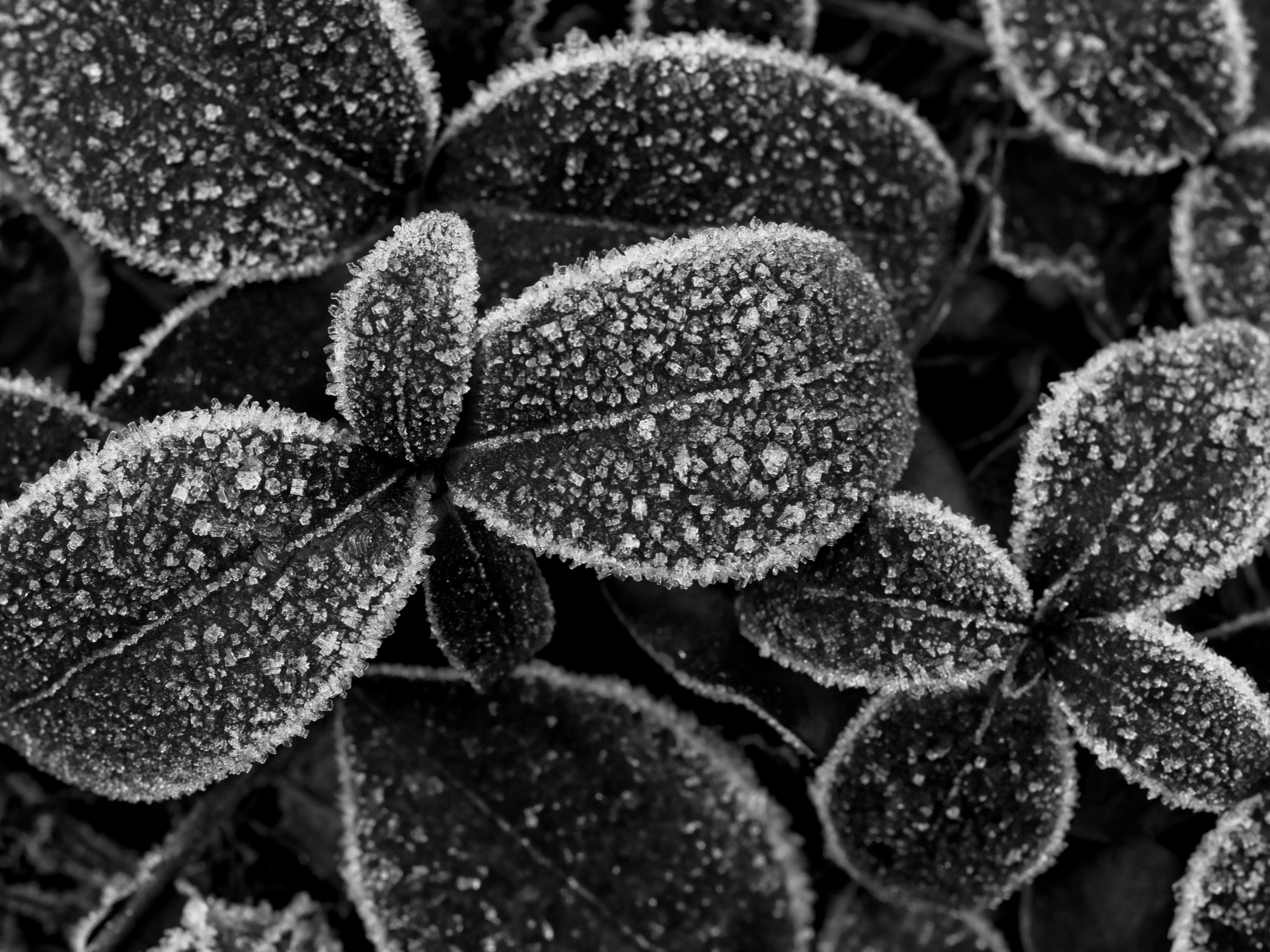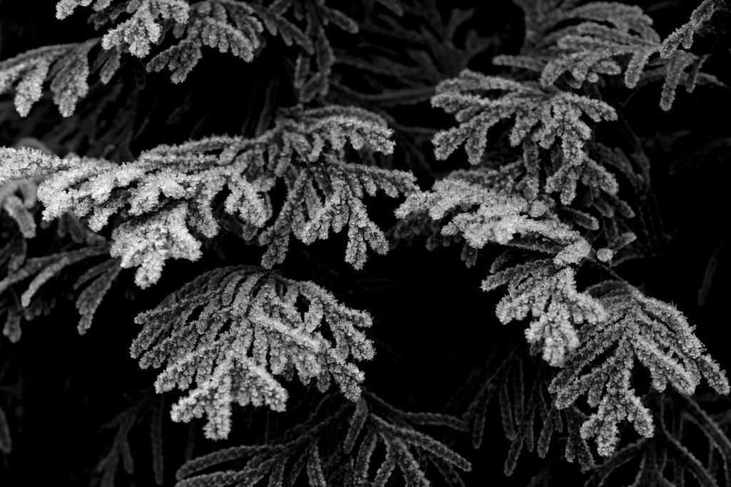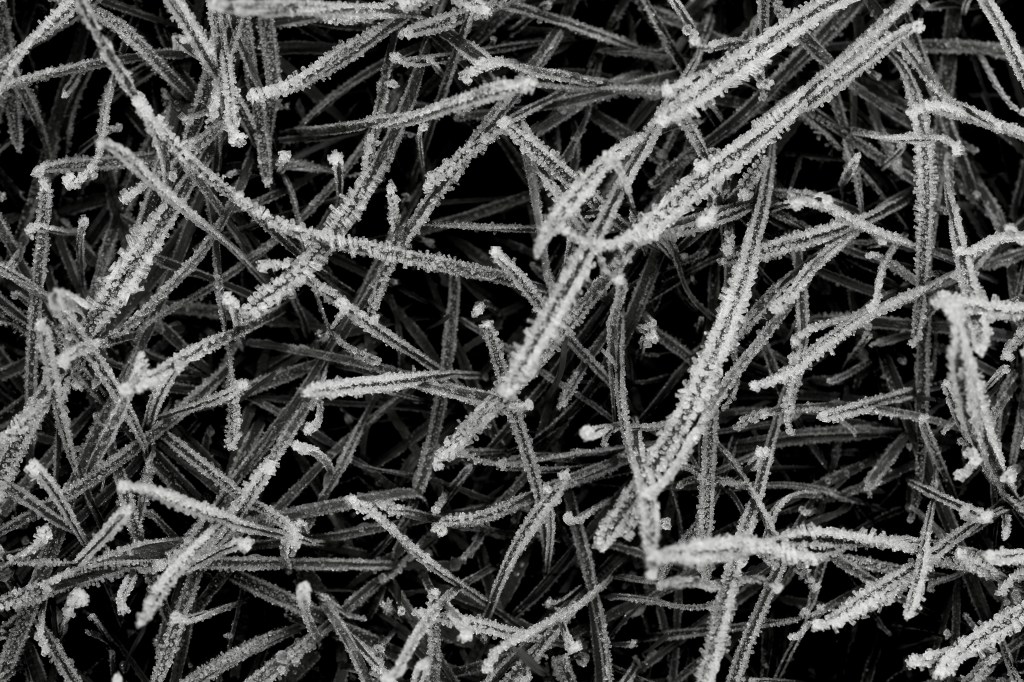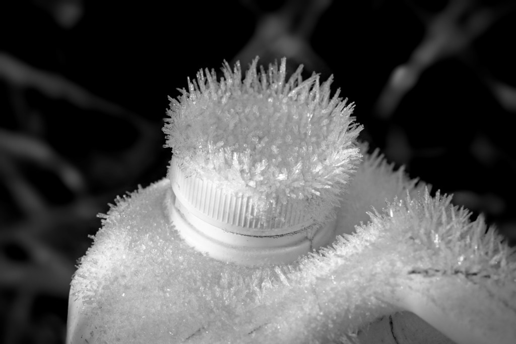 Here are some black and white images of frost and ice crystals taken on two different days last year. In November, we walked around a part of Fornebu, just outside of Oslo, and enjoyed the crystals growing on various items — and in December, I shot a bit of frosty nature around our garden. I always love when ice crystals grow on those frosty, humid mornings. It’s the “good” kind of ice.